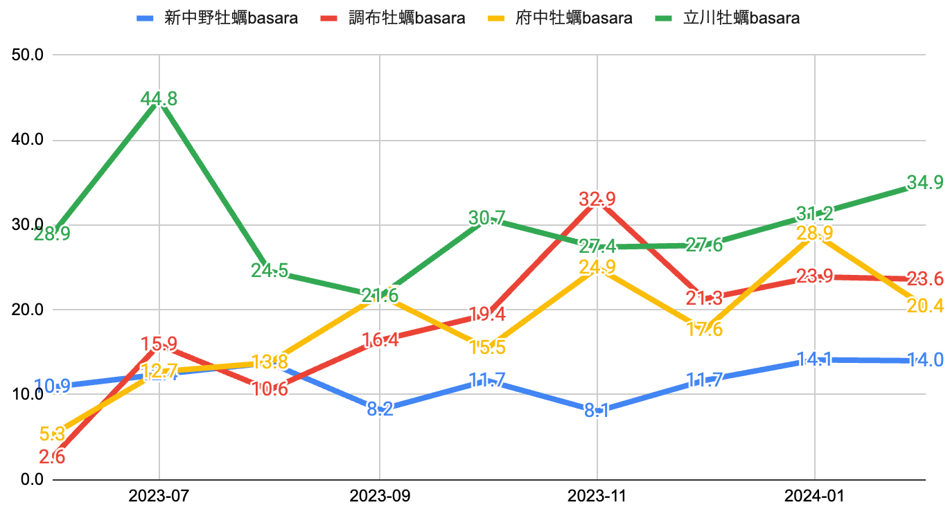 株式会社ばさら厨房は、東京都の多摩・中野地区で「牡蠣basara」など4店舗を運営しています。2006年に1店舗目をオープン。「人の力」を大切にドミナント展開を進め、地元に愛されるお店づくりをされています。メイン業態の「牡蠣basara」では、オイスターマイスターの資格を持つ社長が激選した、全国各地の高級生牡蠣を提供しています。