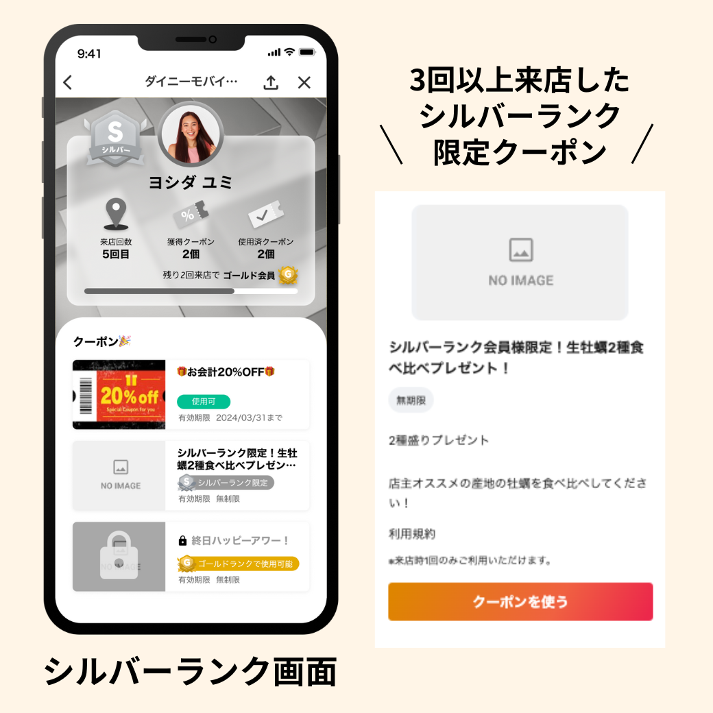 会員ランク(来店回数)に合わせて、クーポンをプレゼント。今では全店で設定されていて、毎月会員クーポンが利用されています。