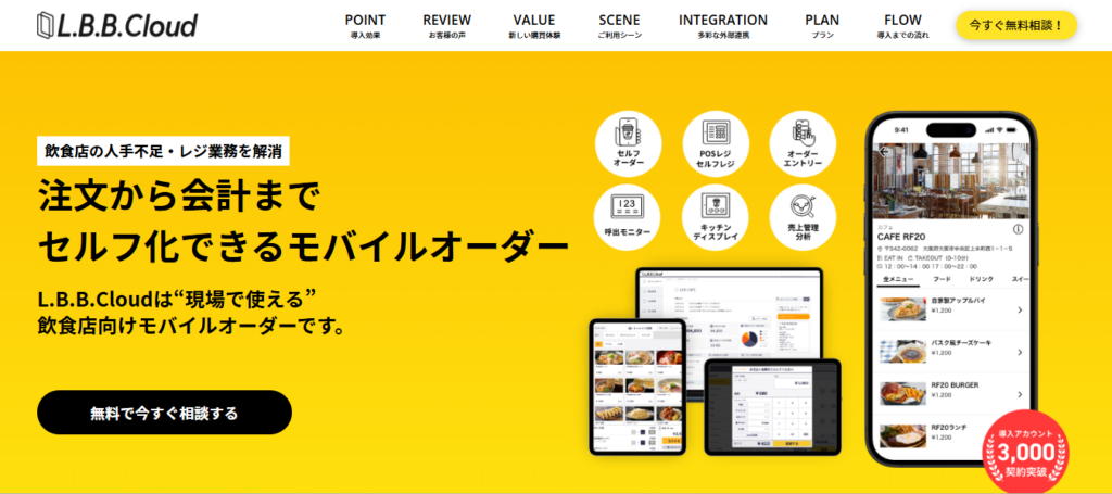 L.B.B. Cloudは、高いカスタマイズ性と拡張性を備えたモバイルオーダープラットフォームです。