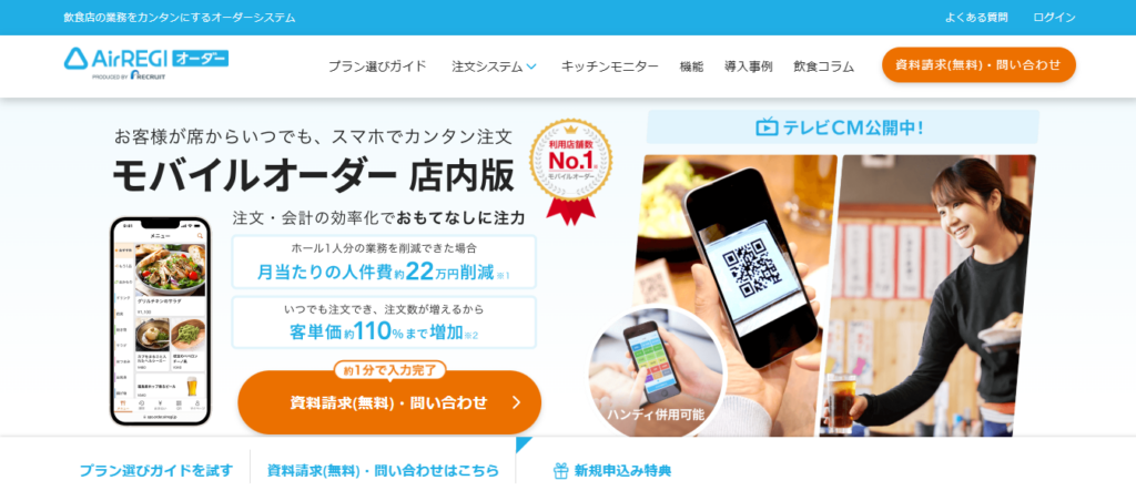 Airレジ オーダーは、リクルートが提供する「Airレジ」とシームレスに連携するオーダーシステムです。