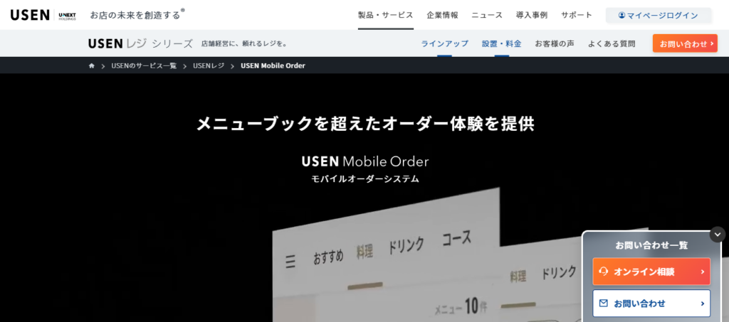 USENレジ MOBILE ORDERは、USENが提供するPOSレジ「Uレジ」専用のモバイルオーダーシステムです。