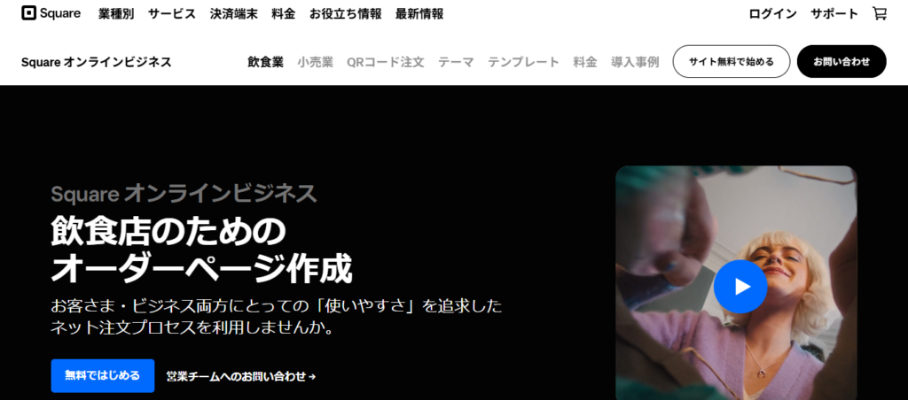 Squareのモバイルオーダー機能は、決済代行会社Squareが提供する「Square オンラインビジネス」や「Square POSレジ」を通じて利用できる、オールインワン型のシステムです。