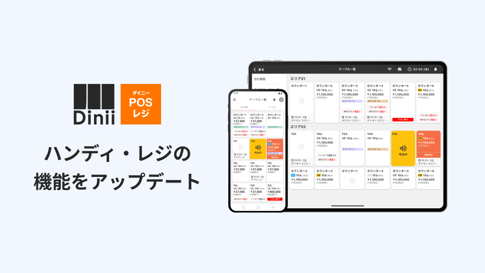 あらゆる業態に対応する「ダイニーPOSレジ」の画面表示を刷新し、飲食店での接客力向上と売上アップに貢献 あらゆる業態に対応する「ダイニーPOSレジ」の画面表示を刷新し、飲食店での接客力向上と売上アップに貢献