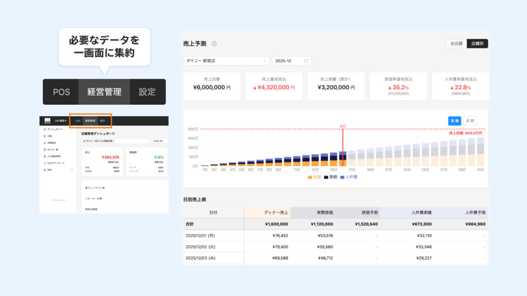 ・飲食店経営に欠かせないデータを一元管理