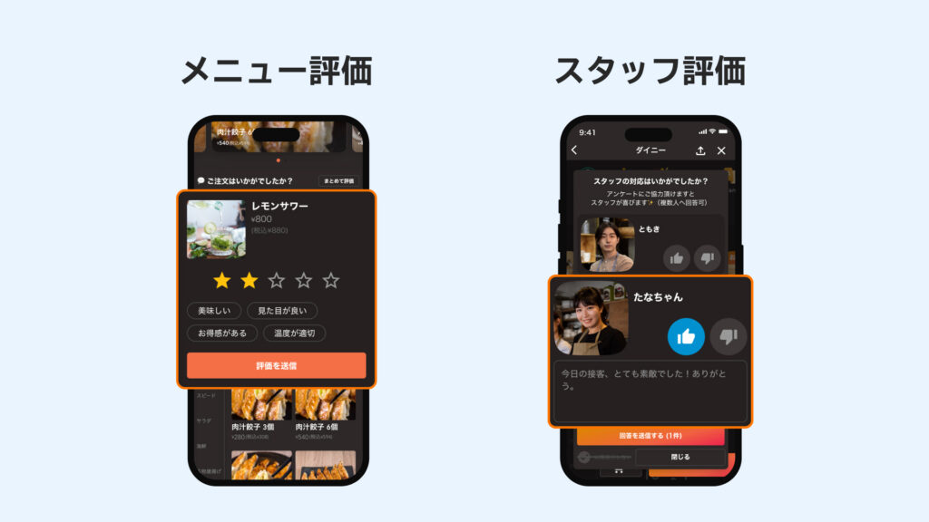 ・生の声をその場で回収!メニュー・スタッフ評価アンケート