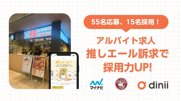 55名応募、15名採用!アルバイト求人、推しエール訴求で採用力UP!【マイナビ × 奴ダイニング × ダイニー】