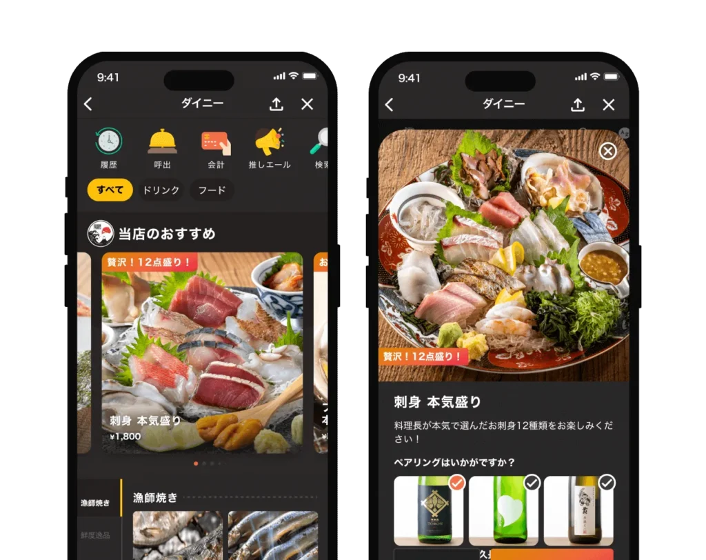 【ダイニーモバイルオーダー】お客様に注文体験の楽しさを提供する唯一無二のモバイルオーダーです。売上UPに繋がる「動画によるメニュー訴求」「多言語自動切替・翻訳機能」や、「LINE連携によるお客様の自動会員化」が可能。